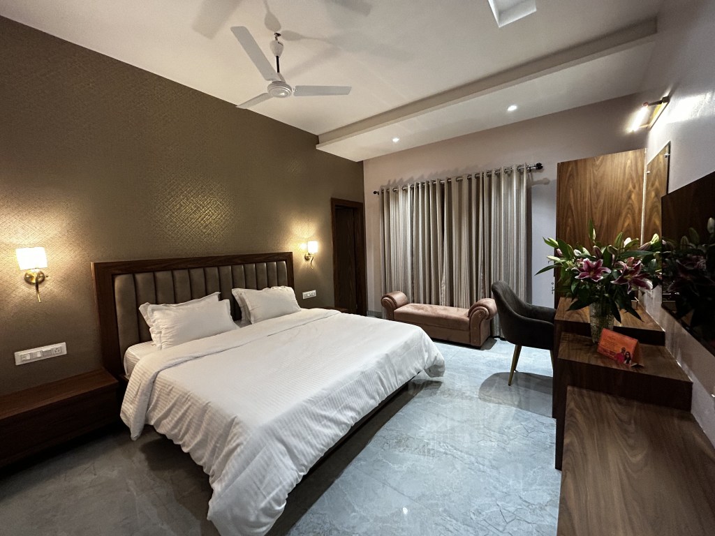 Booking all five rooms transforms Ashirvad into your private sanctuary. Enjoy the company of your loved ones in the spacious and beautifully designed living room, perfect for shared meals and relaxation.